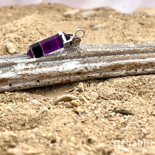 Fluorite purple silver pendant