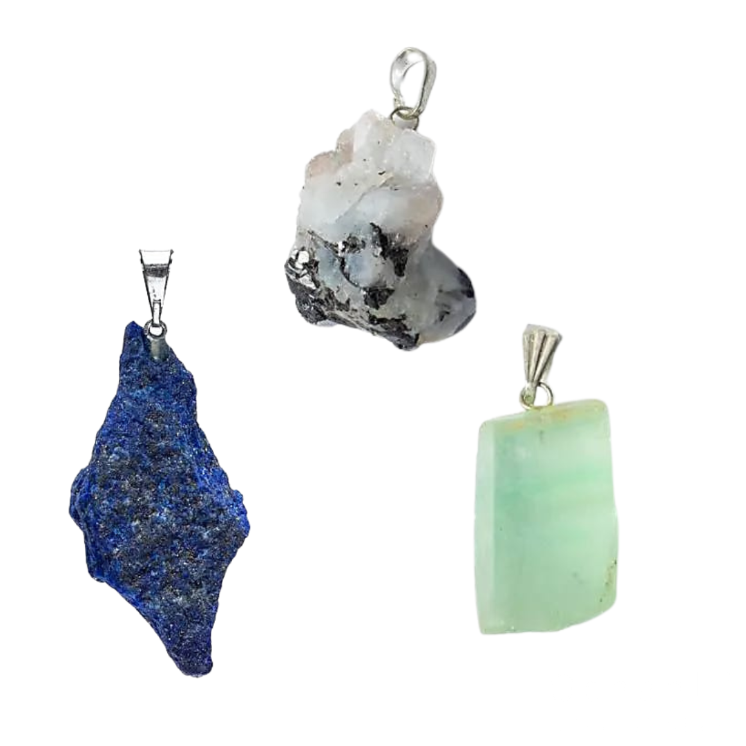 All items are filled with real, natural semi-precious stones. To preserve the magic, we chose the stone types from a selection of: Fluorite, Carnelian, Aventurine, Tourmaline, Sodalite, Rock Crystal, Jadeite, Green Calcite.