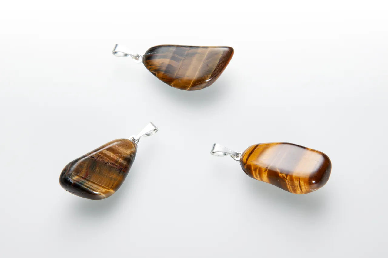 Tiger eye pendant, the eye is made of silver-plated brass and contains no nickel.