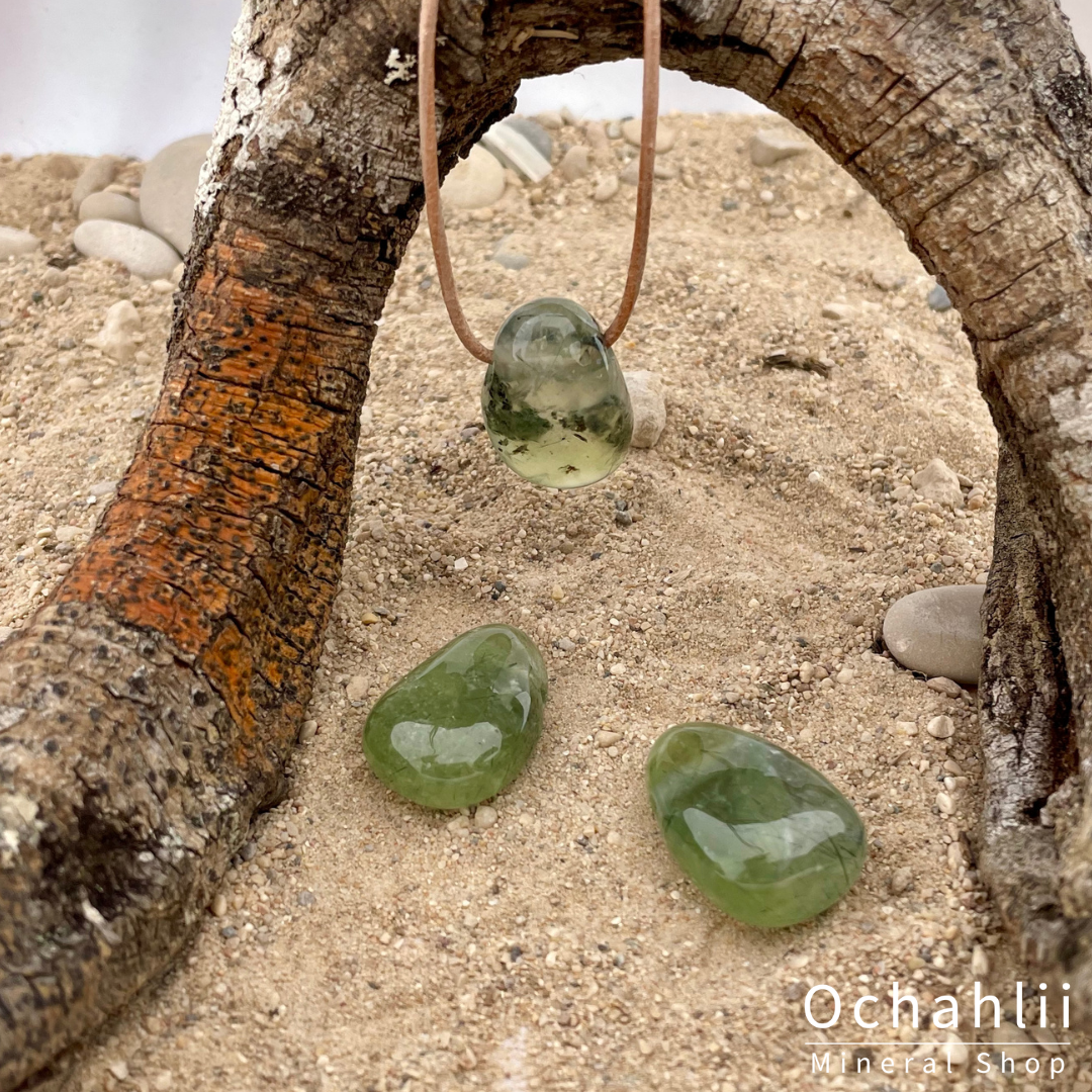 La préhnite est une pierre d'amour inconditionnel. C'est la pierre de l'archange Raphaël. Il favorise la connaissance intérieure. La préhnite est une pierre protectrice et purifiante qui vous enveloppe d'énergie divine. C'est une pierre qui vous aide à faire du rangement, elle vous aide à lâcher prise sur les choses dont vous n'avez plus besoin. Il vous donne une meilleure connaissance de vous-même et vous aide dans votre croissance spirituelle.