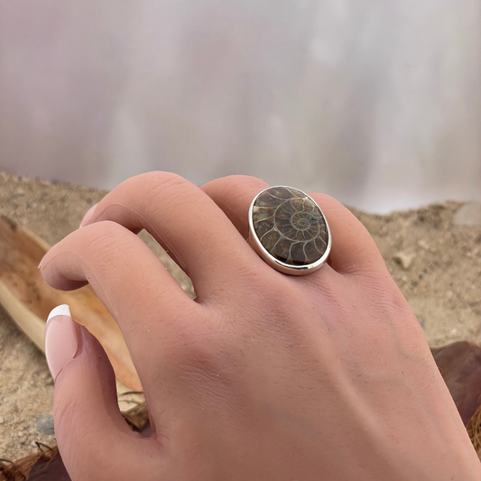 Ammoniet zilveren ring maat 61