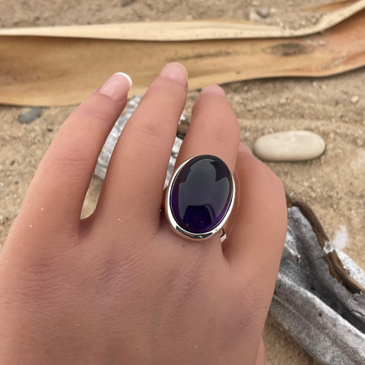 Amethist zilveren ring maat 61