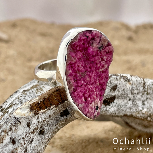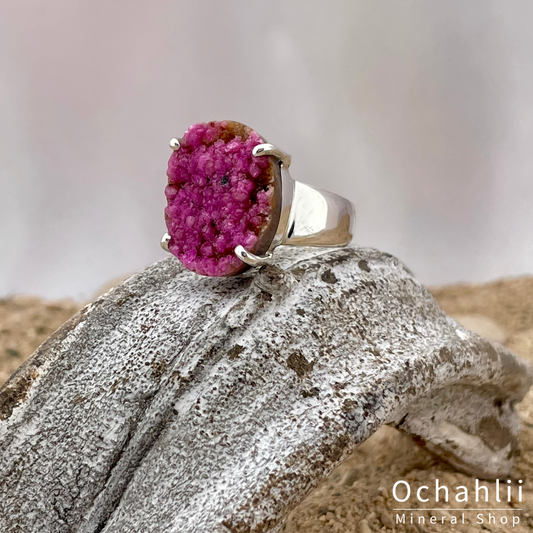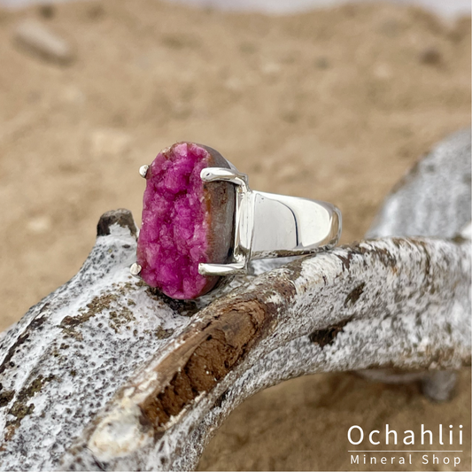 Kobalt Calciet ruw zilveren ring maat 57+