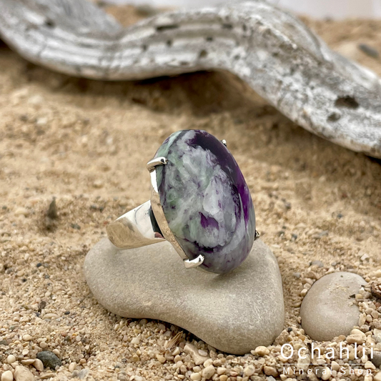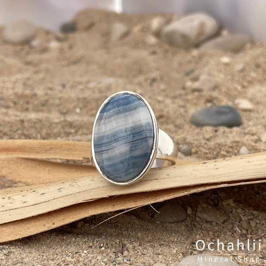 Kobalt Calciet ruw zilveren ring maat 52