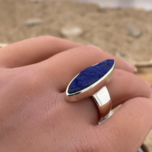 Lapis Lazuli ruw zilveren ring maat 53