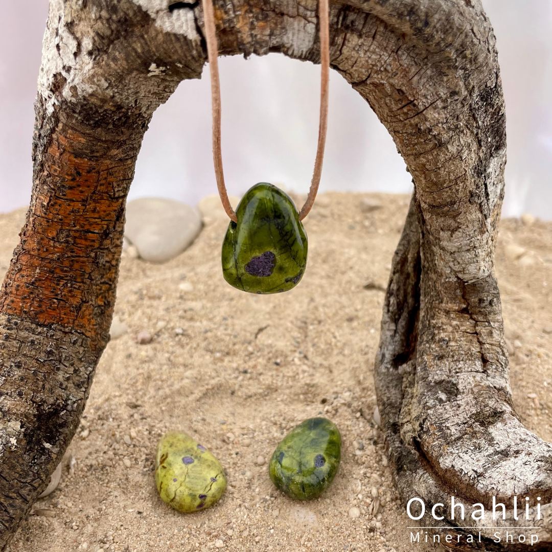 Atlantasiet is een combinatiesteen die bestaat uit groene Serpentijn en paars Stichtiet. Het is een aardende steen die je emotioneel evenwicht geeft en je helpt je leven beter in de hand te hebben. Hij vermindert stress en laat je eerst denken en dan handelen. Hij brengt rust in je omgeving en een gevoel van vrede. Hij laat je zien hoe mooi en zuiver je ware zelf is en vergroot zo je zelfvertrouwen. Het is een goede steen bij angst en depressies. Hij helpt je orde in de chaos te scheppen en geeft je meer helderheid en duidelijkheid.