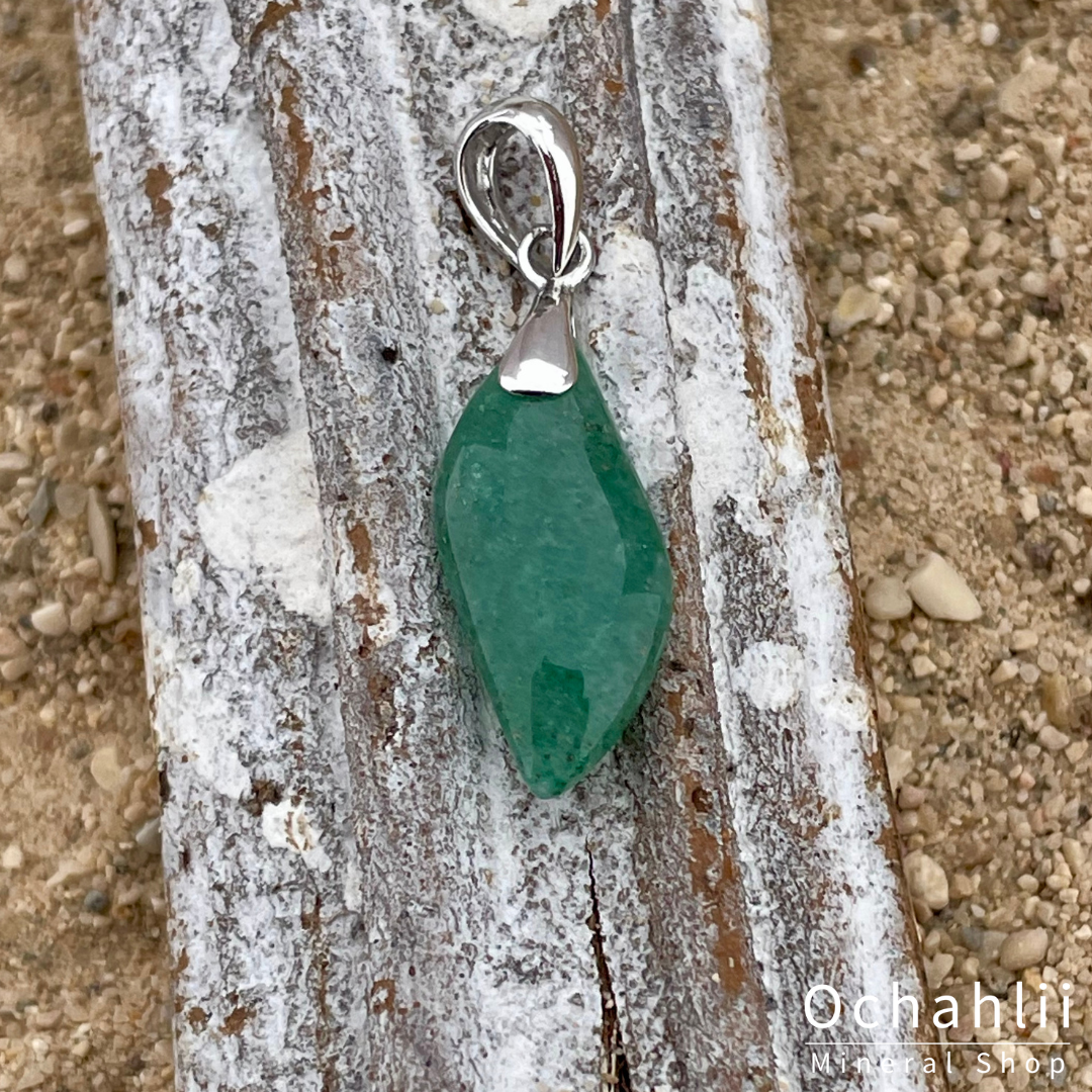 Groene Aventurijn geeft troost aan het hart. Zorgt voor voorspoed en onbezorgdheid. Helpt bij nervositeit, stress, slaapstoornissen en het loslaten van rondmalende gedachten. Absorbeert elektromagnetische smog.