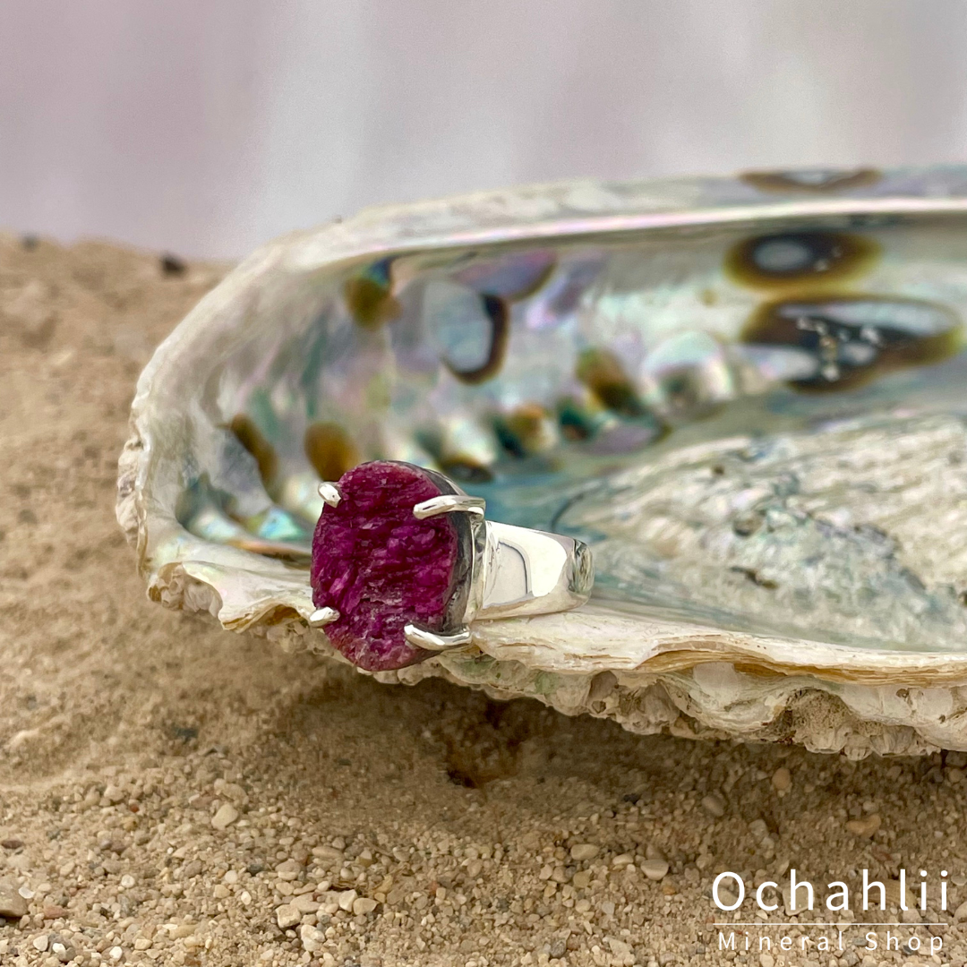 Kobalt Calciet zilveren ring maat 53
