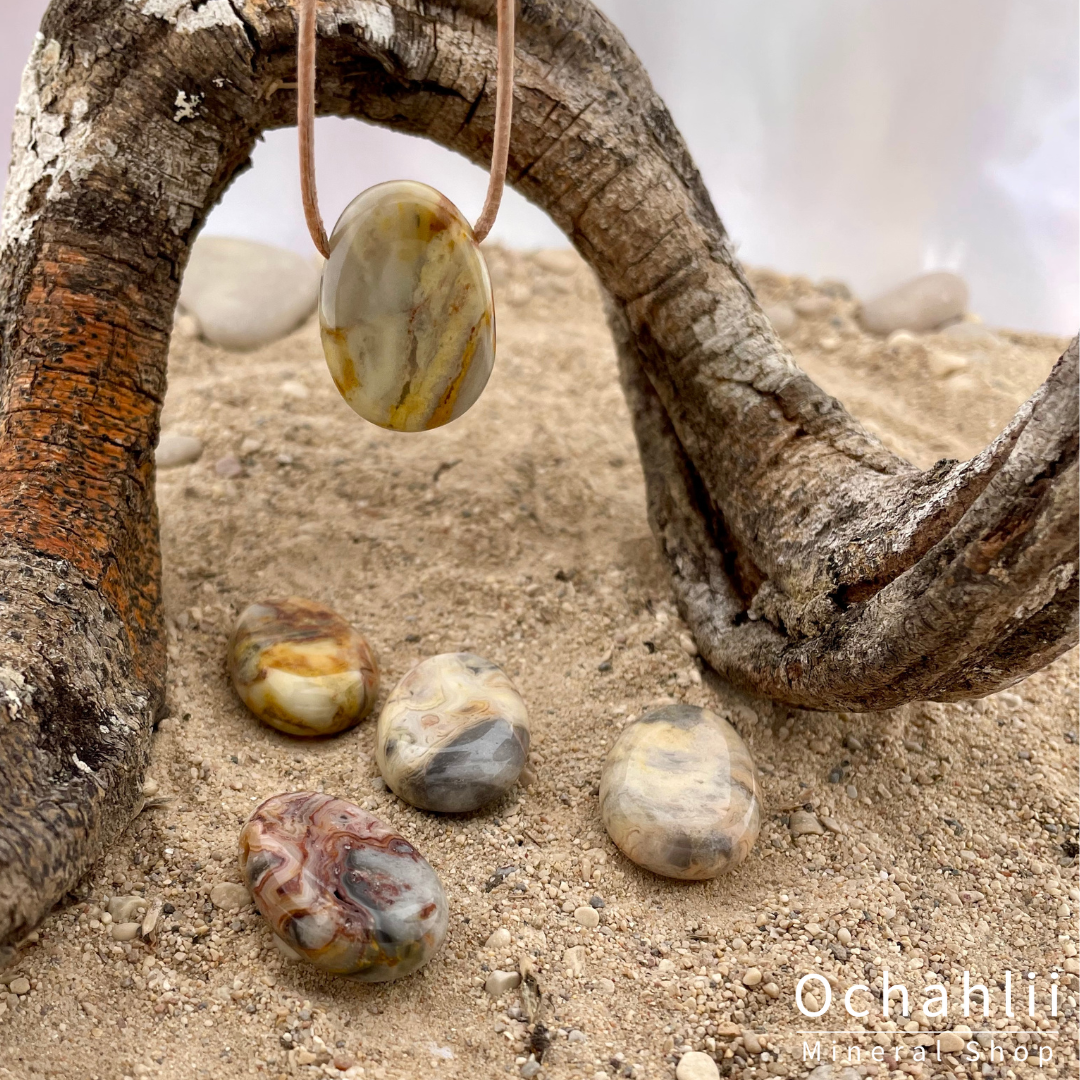 Crazy lace agaat is een aardende en reinigende steen die je helpt om op een lichtere en spontane manier in het leven te staan. Hij brengt evenwicht en geeft veel kracht. Hij werkt kalmerend, verhoogt je bewustzijn en brengt je in verbinding met je hogere zelf.  Hij versterkt het zelfvertrouwen, doorbreekt rechtlijnigheid en stimuleert je creativiteit. Hij laat je het leven van de zonnige kant zien en geeft meer levenslust.