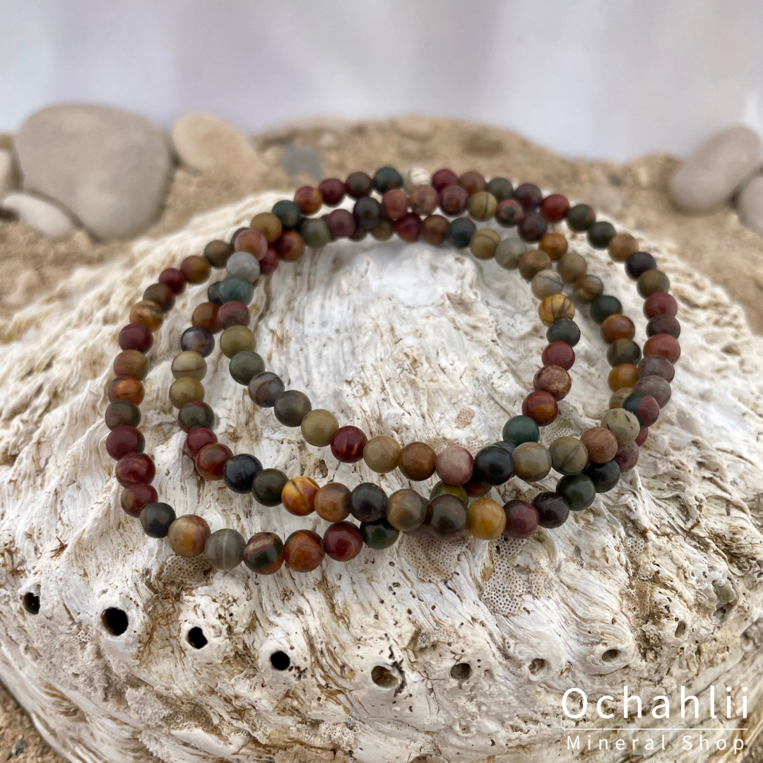 Polychroom Jaspis is een beschermende steen die de chakra's en aura reinigt. Hij brengt evenwicht tussen lichaam en geest en geeft je meer levensvreugde. Polychroom Jaspis geeft steun in tijden van stress, maakt je vastberaden en geeft je moed om je problemen aan te pakken. Het is een goede steen om elektrosmog te neutraliseren.