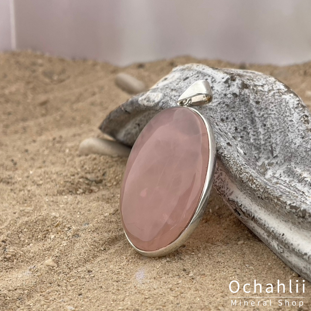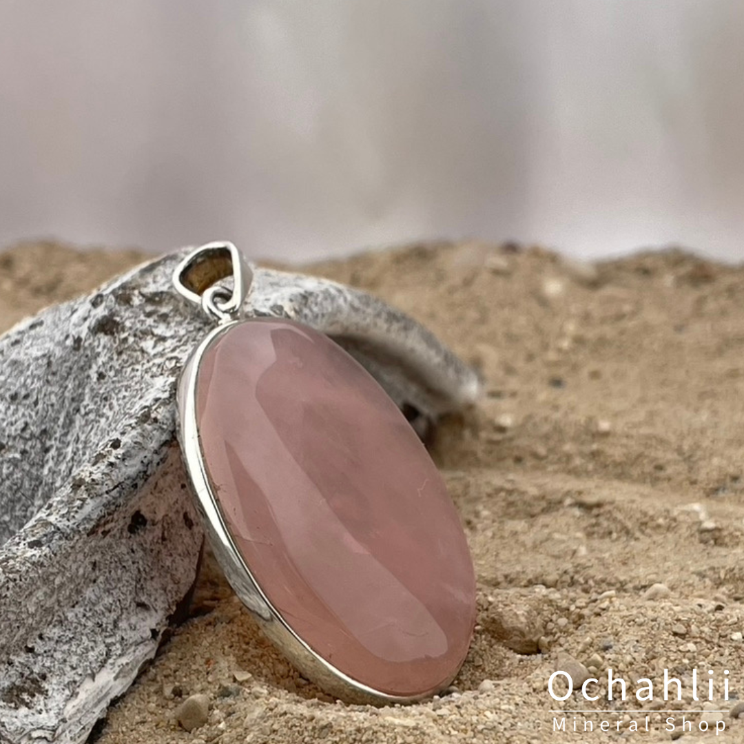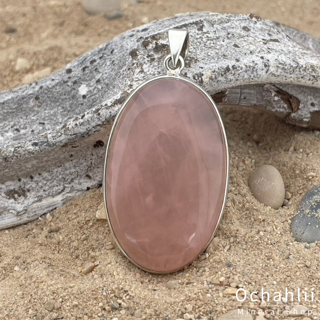 Rozekwarts zilveren hanger