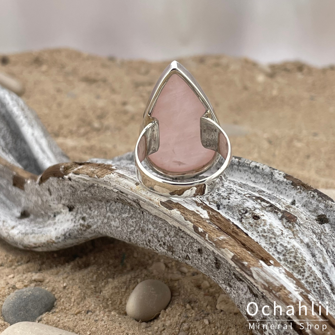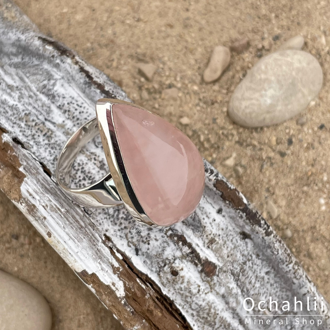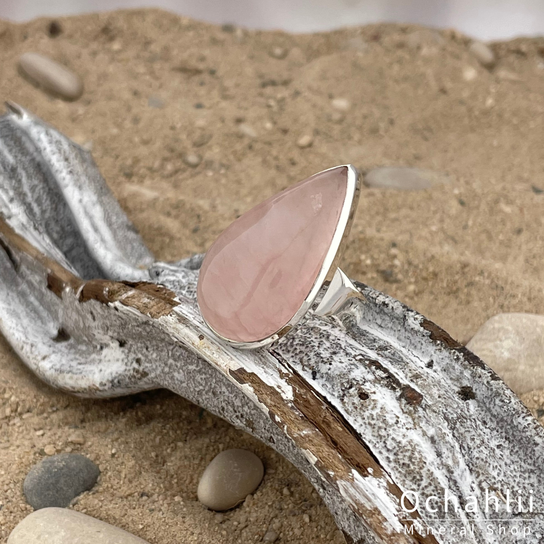 Rozekwarts zilveren ring maat 61